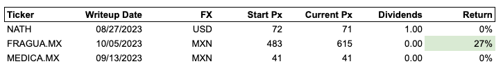 I wanted to provide a few quick updates on past writeups. Thankfully my portfolio has performed much better than what these 3 ideas would suggest. That said I remain bullish on both Farmacias Guadalajara and Medica Sur.